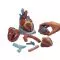 7-teilig. Dieses Modell zeigt die Anatomie des menschlichen Herzens. Auf der Höhe der Ventilebene ist es horizontal halbiert.