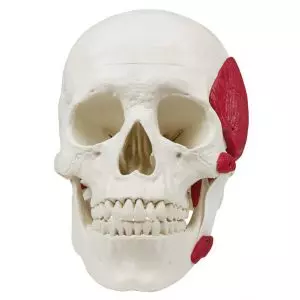 Der vergrößerte Hirnschädel ist typisch für diese schwere Missbildung. Das Schädeldach des einteiligen Schädels ist teilweise von Knochenhaut bedeckt. Der rechte untere Eckzahn und der rechte Backenzahn sind kariös zerstört. Naturabguss. * Hochwertige Originalabformung * Handgefertigt aus hartem, unzerbrechlichem Kunststoff * Sehr akkurate Darstellung der Fissuren, Foramina, Processus, Nähte und anderen Details