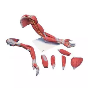 Dieses hochwertige Modell in natürlicher Größe gibt die verschiedensten anatomischen Strukturen des Menschen extrem detailgetreu wieder. Daher ist es auch für die qualitativ hochwertige Ausbildung an medizinischen Hochschulen besonders geeignet. Die rechte Hälfte zeigt Haut, die linke Hälfte die oberflächliche und tieferliegende Muskulatur mit Nerven, Gefäßen und knöchernen Strukturen. Abgerundet wird die Vielseitigkeit dieses ästhetischen Modells durch die genaue Darstellung der inneren Organe. Es ist zerlegbar in: * 2-teiliger Kopf * Gehirnhälfte * M. sternocleidomastoideus * 6-teiliger Muskelarm (abnehmbar: M. deltoideus, M. biceps brachii, M. triceps brachii, M. palmaris longus mit M. flexor carpi radialis, M. brachioradialis mit M. extensor carpi radialis) * 5-teiliger Oberschenkel (abnehmbar: M. sartorius, M. gluteus maximus, M. rectus femoris, M. biceps femoris cap. l. mit M. semitendinosus) * 2-teiliger Unterschenkel (abnehmbar: M. gastrocnemius) * Brust-Bauchdecke mit abnehmbarer Brustdrüse * Torsokörper mit Hautarm und -bein * 2 Lungenhälften * 2-teiliges Herz * Leber mit Gallenblase * 2-teiliger Magen * Nierenhälfte * 4-teiliges Darmpaket * 3-teiliger weiblicher Genitaleinsatz mit Embryo * 4-teiliger männlicher Genitaleinsatz Inklusive der Lernprogramme 3B ANATOMYtrainerTM und 3B MUSCLEtrainerTM auf CD-Rom sowie einer CD-Rom mit Bildern und Erläuterungen der einzelnen Strukturen in L/D/E/F/S/P/J. Lieferung inkl. fahrbarem Holzstativ und Aufbauanleitung.