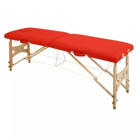 Holz-Massageliege mit Gesichtsöffnung. Gut geeignet für Osteopathie-Praxis.