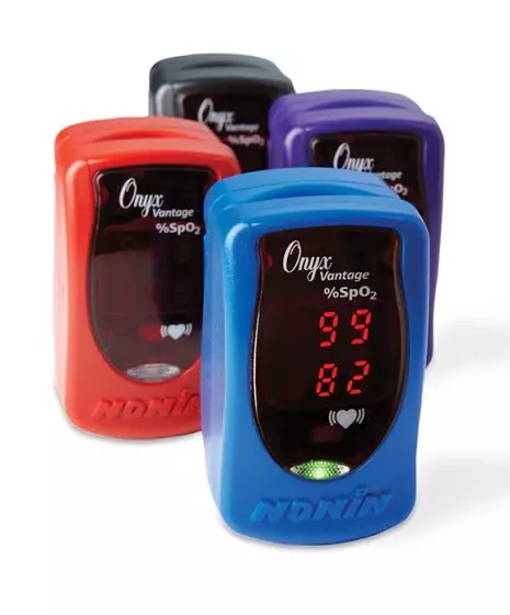 L'oxymètre de pouls Onyx Vantage 9590 est disponible en 4 coloris : noir, violet, rouge ou bleu