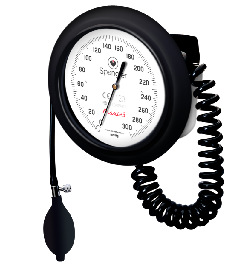 Spannungsmesser großen Skala Spengler Maxi+2 - Type anérode - Nylon Armband - Messverfahren Auskultation - messen unzerbrechliche Glas Plexiglas - Gummischlauch "hohe Beständigkeit" Ozon und UV - Genauigkeit: 3 mmHg - 167 mm Durchmesser Ziffe