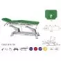 - Réglage des plateaux: Têtière par vérin à gaz, cyphose avec moteur électrique, plateau pieds par vérin à gaz