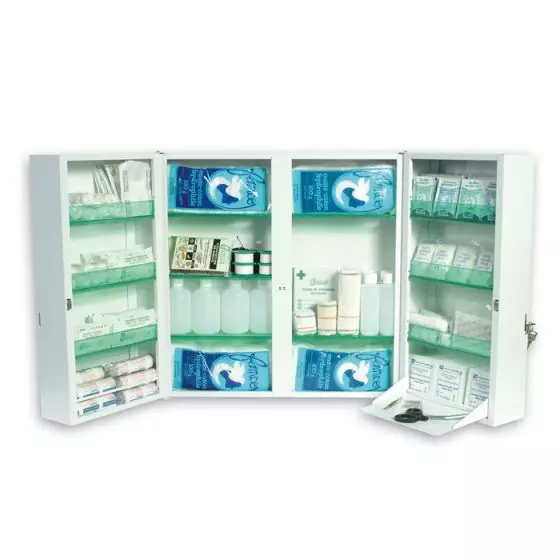 Voll Medikamentenschrank Esculape ASEP GP 20 - Ideal für die Lagerung von Erste-Hilfe-Ausrüstung - weiß lackiertem Metall - 2 Türen - Tastensperre - Gewicht: 8,2 kg
