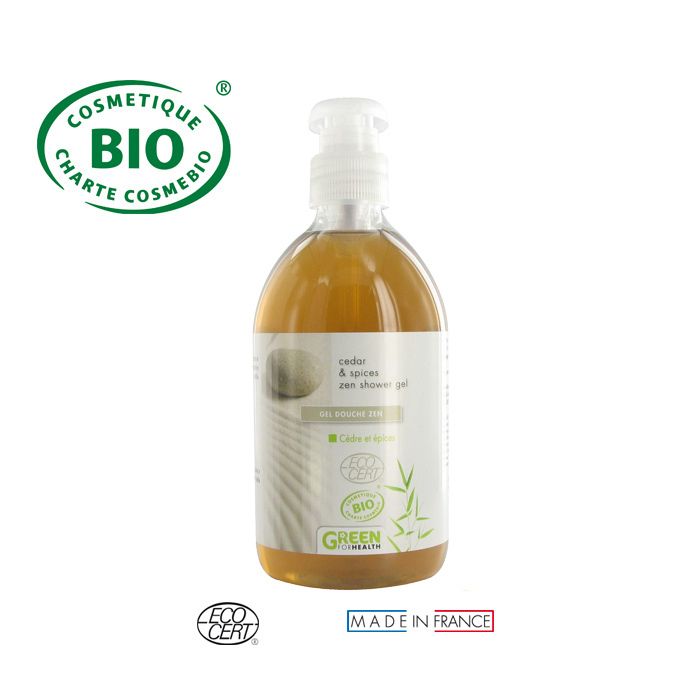 ZEN Bio-Duschgel 500 ml Zeder und Gewürzen Green For Health- Wohltäter bieten eine Dusche - ohne Adjuvans, Paraben frei - Keine synthetischen Duft - natürlicher Farbstoff - durch ECOCERT Greenlife zertifiziert